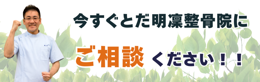 「とだ明凜整骨院」では、そうしたむち打ち症や事故後の後遺症をできるだけ残さないための丁寧な施術を行っています。