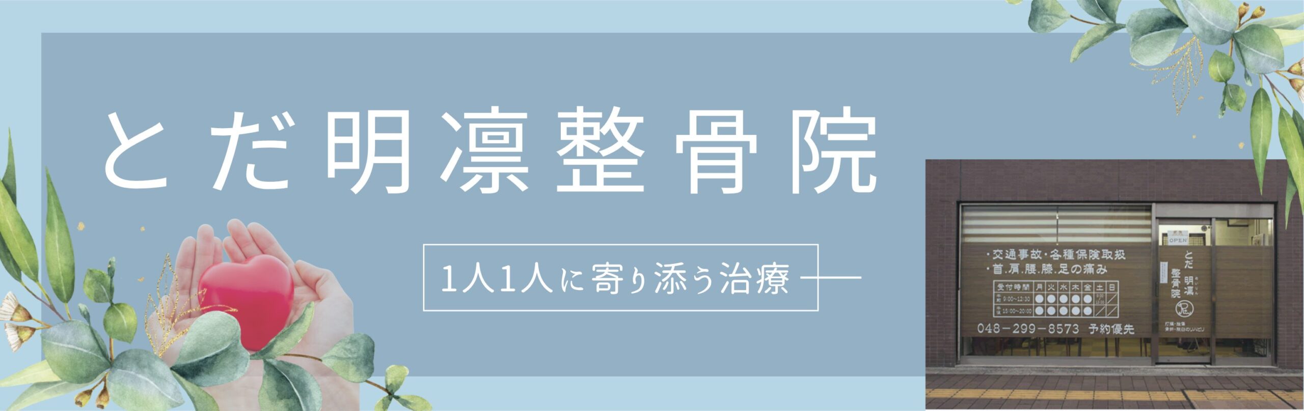 「とだ明凜整骨院」では、そうしたむち打ち症や事故後の後遺症をできるだけ残さないための丁寧な施術を行っています。